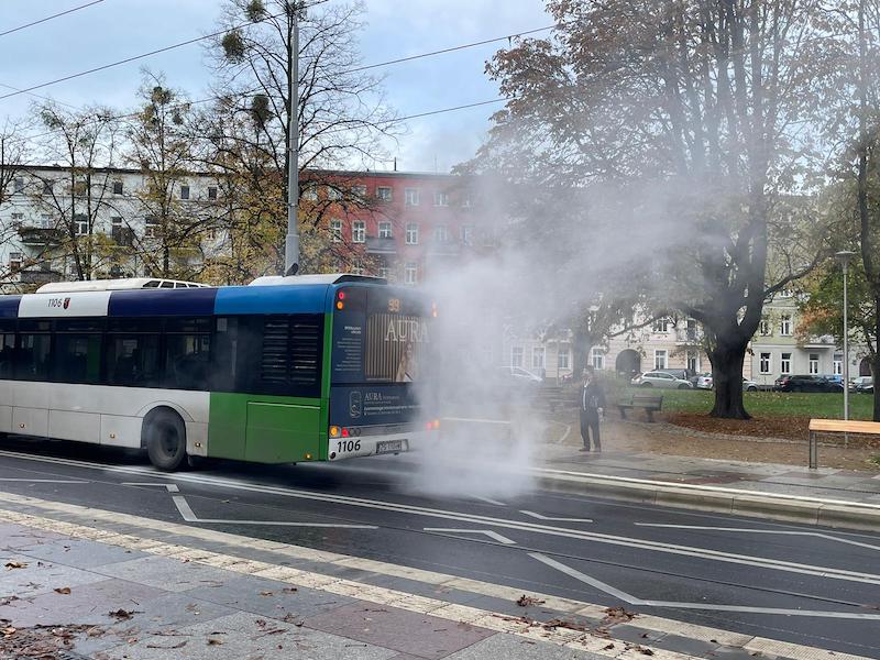 Do awarii autobusu linii nr 99 doszło w piątek 3 listopada przed godz. 11 na ul. Asnyka w rejonie przystanku Niemcewicza w Szczecinie. Zdjęcie zadymionego pojazdu komunikacji miejskiej przesłał nasz Czytelnik.