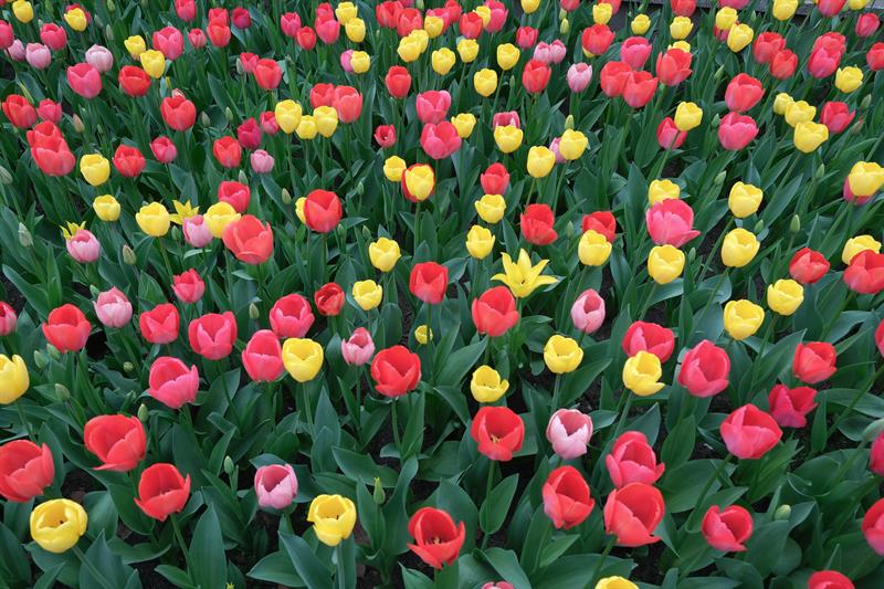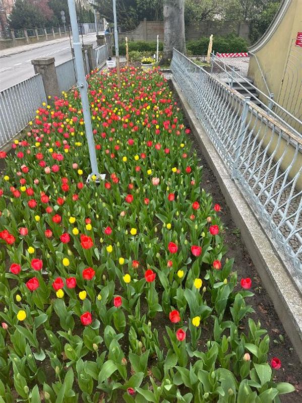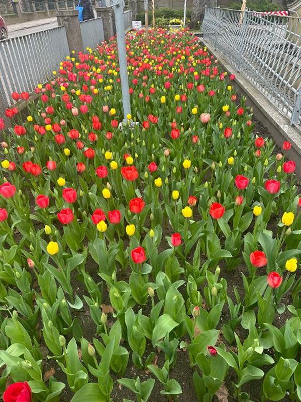 Tulipanów jest w sumie 2300, choć na pierwszy rzut oka liczba ta może wydawać się nieprawdopodobna. Dyrektor zapewnia jednak, że kwiaty zostały policzone. Ich sadzenie było żmudne i odbywało się w trudnych warunkach, ale efekt rekompensuje te początkowe trudności.