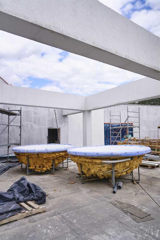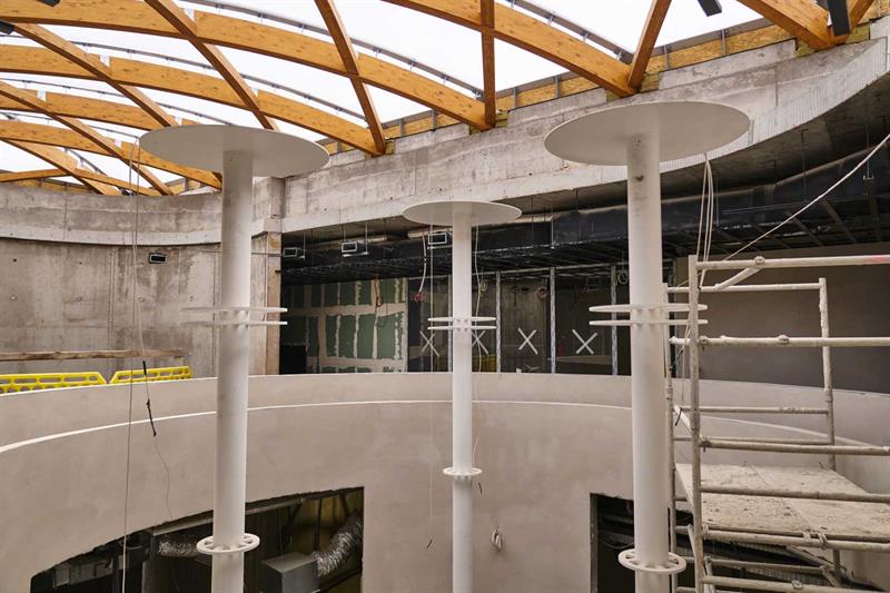 – Ekipy wykończeniowe pracują we wszystkich segmentach obu budynków Fabryki Wody – informuje Piotr Zieliński, rzecznik Fabryki Wody. – Wykonywane są jastrychy, sufity napinane, prowadzone są prace dekarskie w obrębie saunarium na II piętrze. Montowane są drzwi aluminiowe oraz windy. W rejonie niecek basenowych układane są płytki gresowe, a na samych nieckach wykonywana jest hydroizolacja. Z kolei przestrzenie Centrum Edukacyjnego wypełniają się kolejnymi elementami wystaw. W ramach robót sanitarnych montowane były rurociągi technologiczne, prowadzono także prace przy wykonywaniu izolacji hydrantowej. Roboty teletechniczne i elektryczne to z kolei podłączanie opraw na głównej hali basenowej czy rozkładanie okablowania dla systemu audio.