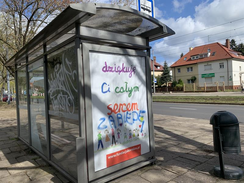 – Niczego nie uszanują! – zadzwonił do redakcji „Kuriera” czytelnik. Zbulwersował go wandal, który do plakatu znajdującego się na przystanku nieopodal skweru Badetki przy al. Wojska Polskiego w Szczecinie Fundacji Nasze Dzieci Kornice przedstawiającego szczęśliwą, liczną rodzinę do słów „Dziękuję Ci całym sercem” dopisał sprayem „za biedę”. Przypomnijmy, że celem fundacji jest wspieranie rodzin jako naturalnego i najważniejszego środowiska wychowawczego dla człowieka. „Jednym z podstawowych zadań, realizowanych przez Fundację „Nasze Dzieci” jest program wspierania macierzyństwa, oraz ochrony życia nienarodzonych od momentu poczęcia dziecka. Udzielamy wsparcia kobietom m.in. w ich pracy, już na etapie ciąży, by mogły realizować się nie tylko na gruncie zawodowym, ale także rodzinnym” – możemy przeczytać na stronie fundacji.