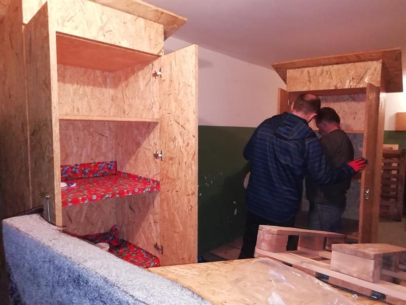 – To szafki z płyt OSB o wysokości 190 centymetrów – opisuje Małgorzata Zajączkowska-Noceń ze stowarzyszenia Jadłodzielnia. – Przypominają trochę lodówki, choć nie są chłodzone. Będą oklejone przydatnymi informacjami i naszymi tabliczkami. Służą temu, by przez 24 godziny na dobę mieszkańcy mogli dzielić się jedzeniem. Podobnie jak w naszych punktach, ale bez dodatkowej obsługi. Każdy zostawia lub bierze, co chce.
