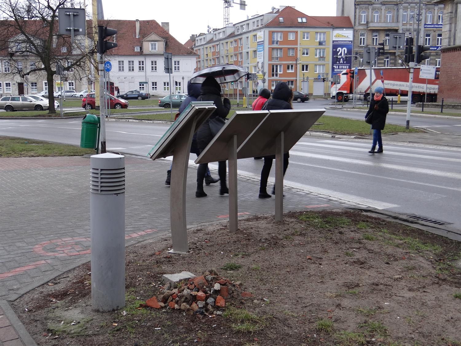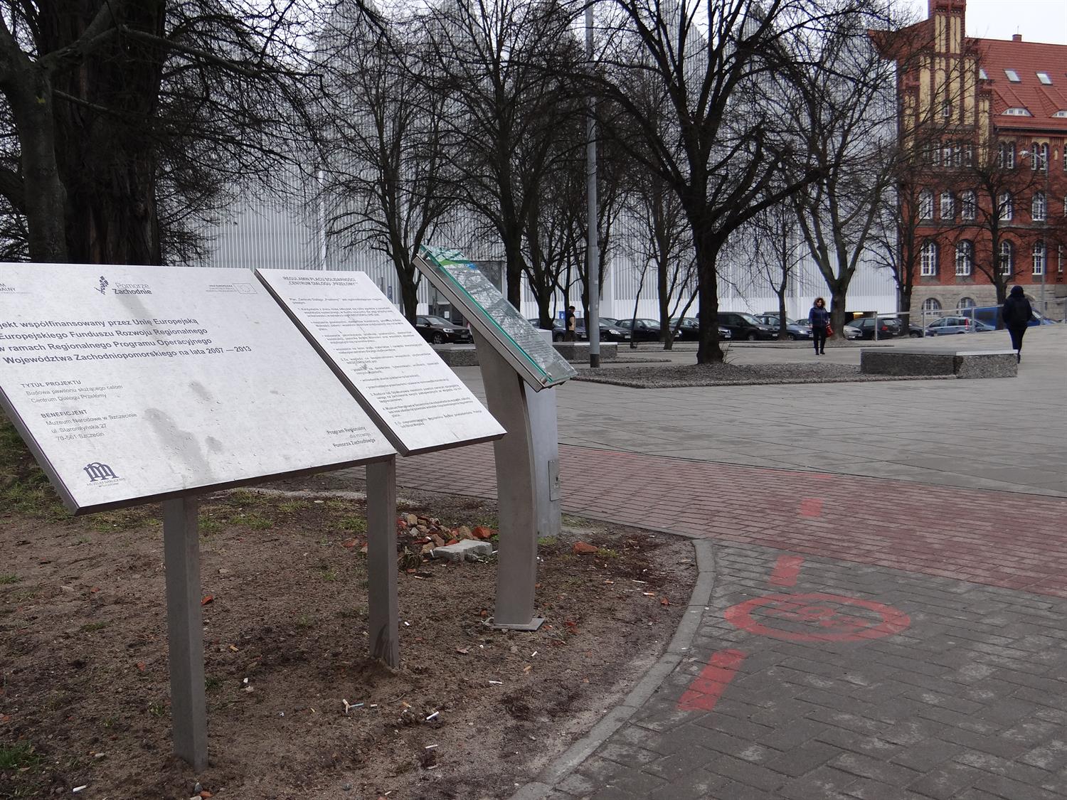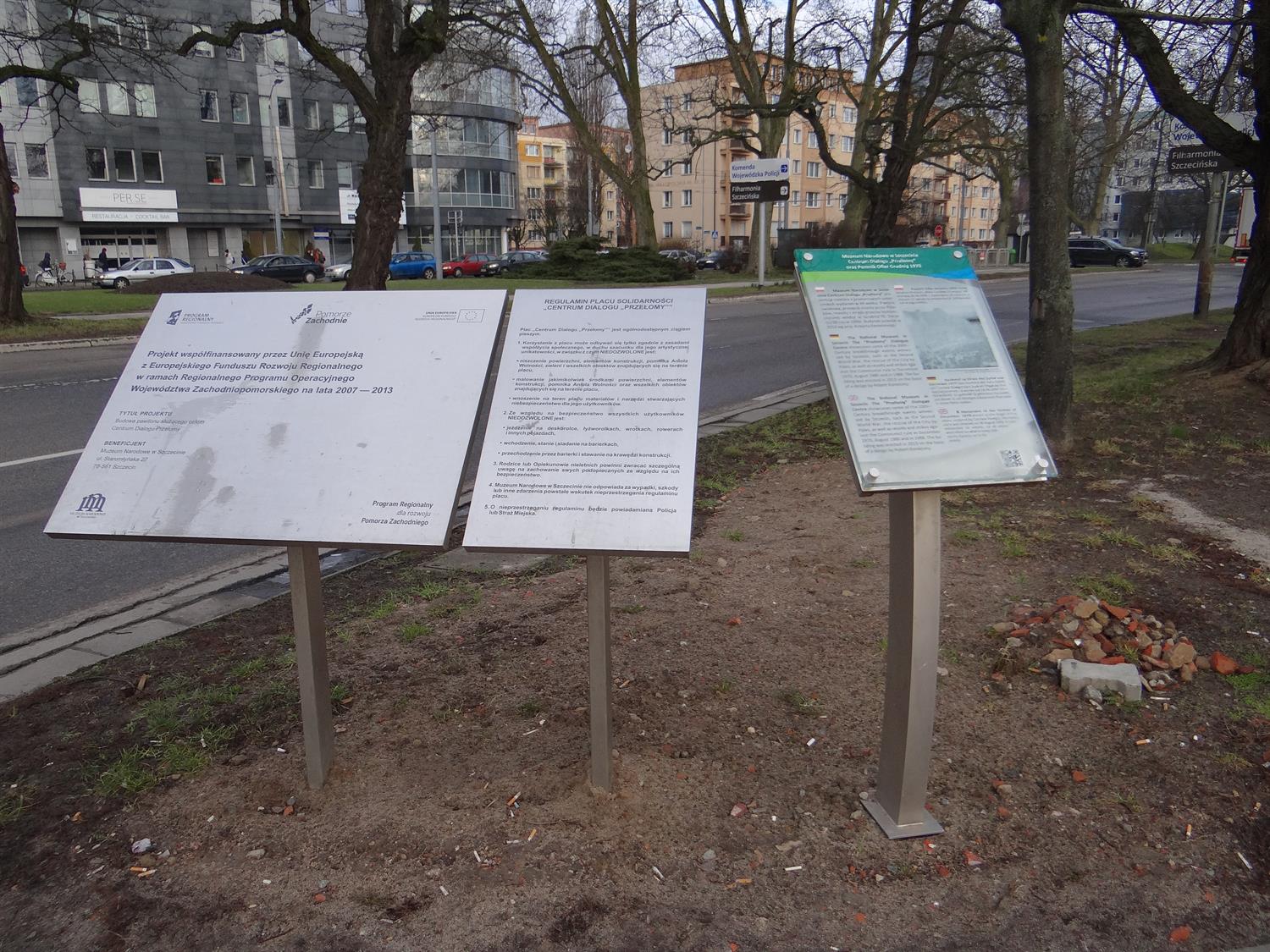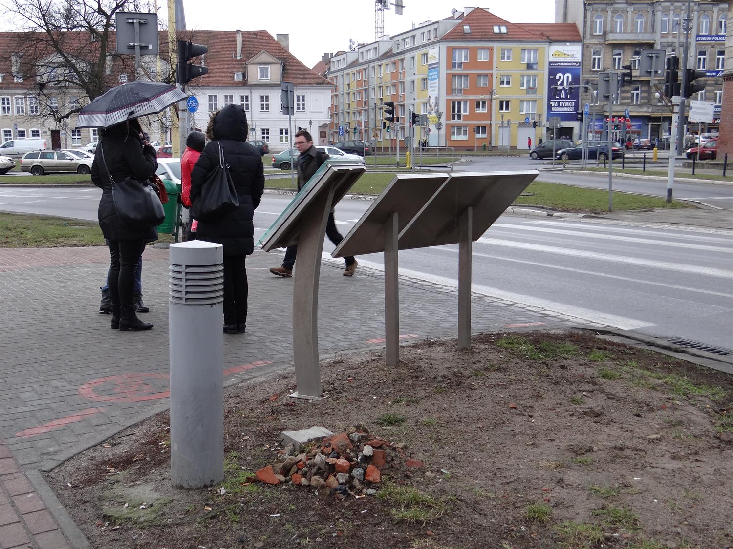 Wiekopomnych dzieł na szczecińskim placu Solidarności i wokół niego nie brakuje. Centralnie do podziwiania "Przełomy" z pomnikiem Ofiar Grudnia 1970 r., wokół klomby w kamieniu, po sąsiedzku gmach nowej Filharmonii Szczecińskiej i odrestaurowany zabytkowy gmach Komendy Wojewódzkiej Policji. A na jego skraju las upamiętniających tablic, regulamin i... gruz na pierwszym planie. Czyżby i ten ostatni ślad jako przejaw działań świadomych człowieka miał pozostać w krajobrazie tej okolicy elementem już trwałym...? ©℗