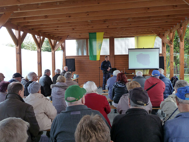 W czasie spotkania z działkowcami przedstawiono aplikację mobilną "Moja komenda" oraz Krajową Mapę Zagrożeń Bezpieczeństwa. Zwrócono uwagę na ławą dostępność i intuicyjność wskazanych narzędzi służących do komunikacji z policją. Mają one ułatwić kontakt z dzielnicowym i skutecznie eliminować lokalne problemy. Po raz kolejny dzielnicowi ostrzegali przed oszustwami „na policjanta”. A także wysłuchali spraw zgłoszonych przez przybyłych na spotkanie.
