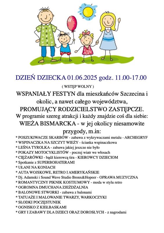 Będą też: aktywności sportowe z MOSRiR Szczecin, strefa maluszka, a w niej: kącik kreatywny, klockowo, kulki, żywe maskotki, balonowe zoo, gry i zabawy integracyjne, Fundacja Kamienica 1 zaprosi do poznania gry Roundnet. Jedną z atrakcji będzie wspólne czytanie baśni ze Stowarzyszeniem Rekonstrukcji Historycznej Metrum, a także autokar Pogoni Szczecin. Poza tym: malowanie buziek, dmuchańce, popcorn i lody, gry wielkoformatowe, wystawy sprzętu i pojazdów służb mundurowych, stare samochody i motocykle oraz pierwsza pomoc z Wojewódzką Stacją Pogotowia Ratunkowego.