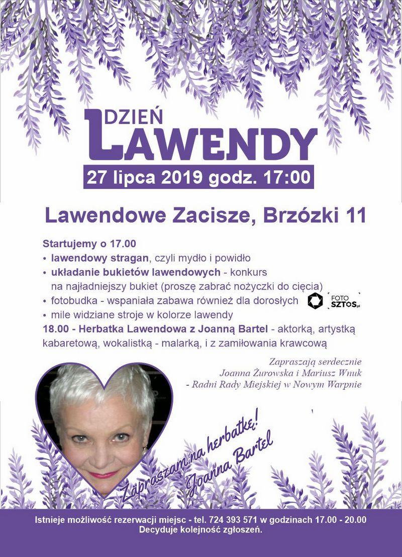 Gwoździem programu ma być Herbatka Lawendowa z Joanną Bartel - aktorką, wokalistką i artystką kabaretową - od godziny 18.