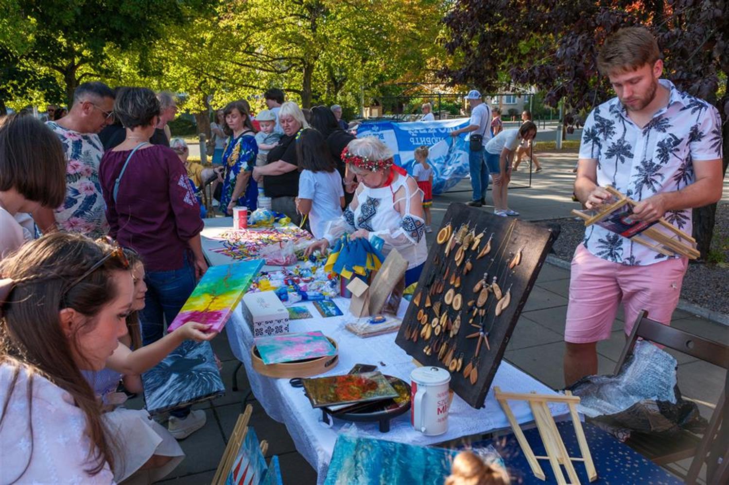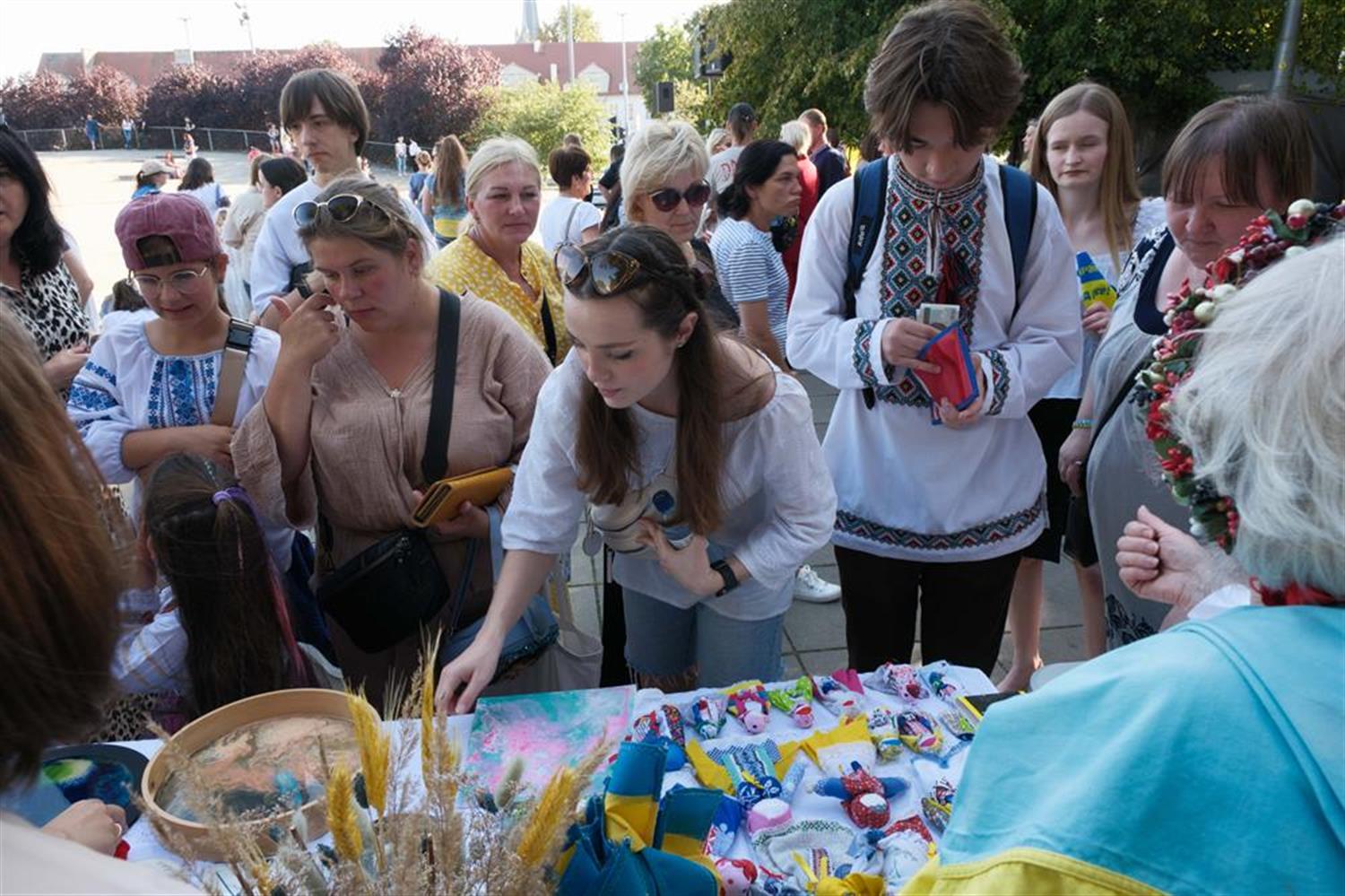 Jednym z ważniejszych punktów programu była zbiórka pieniędzy na zakup drona dla 412 batalionu ukraińskiej armii. Jak powiedziała Viktoria Tarasenko (również ze stowarzyszenia Mi-Gracja), brakuje jeszcze około 1100 złotych. Na kiermaszu można było kupić ukraińskie zabawki, koraliki, wyroby drewniane i obrazy. Na scenie zaprezentowali się ukraińscy artyści, m.in. Anna Vedmidska i studio wokalne ARTYST, a także stowarzyszenie PEOPLE UP i dorosły chór MELODIA POKOLEŃ.