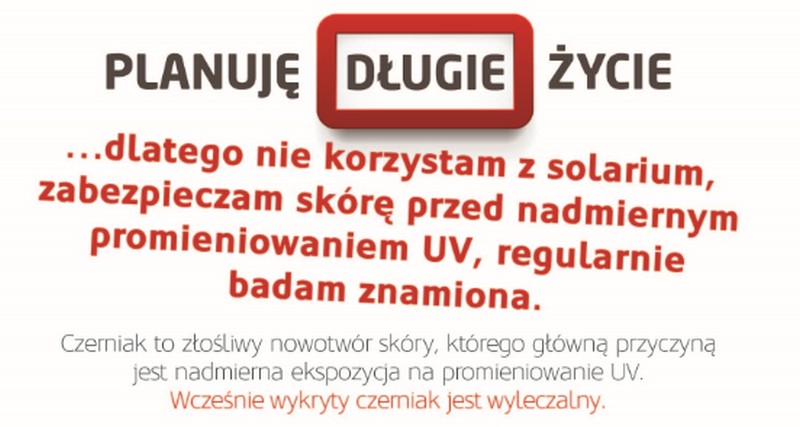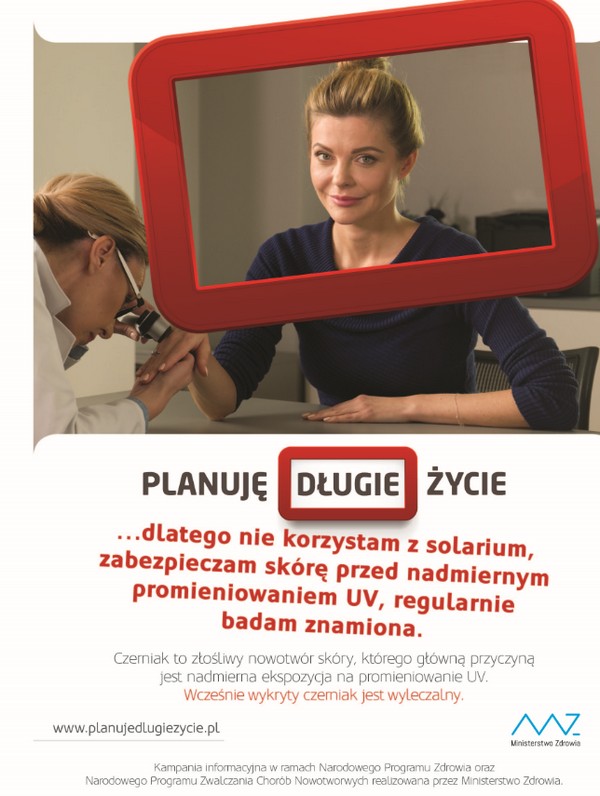 Poza tym podczas DO wyświetlane będą filmy edukacyjne informujące o profilaktyce czerniaka. Udostępnione też zostaną elementy kampanii Ministerstwa Zdrowia: „Planuję długie życie". Mowa będzie więc m.in. o ryzyku nadmiernego korzystania ze słońca, o szkodliwości solarium i o uwadze jaką powinniśmy poświęcić pojawiającym się na skórze znamionom.