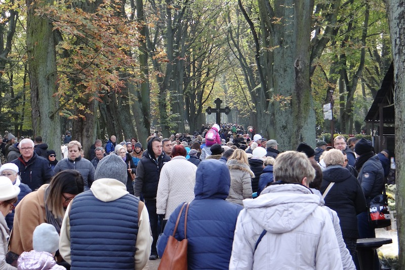 Od wczesnego rana w piątek (1 listopada) na szczecińskich cmentarzach tłumy odwiedzających groby najbliższych, przyjaciół i znajomych. Dużo ludzi już tradycyjnie - jak co roku – zwłaszcza na Cmentarzu Centralnym.