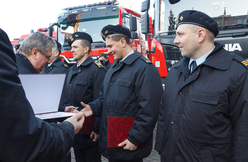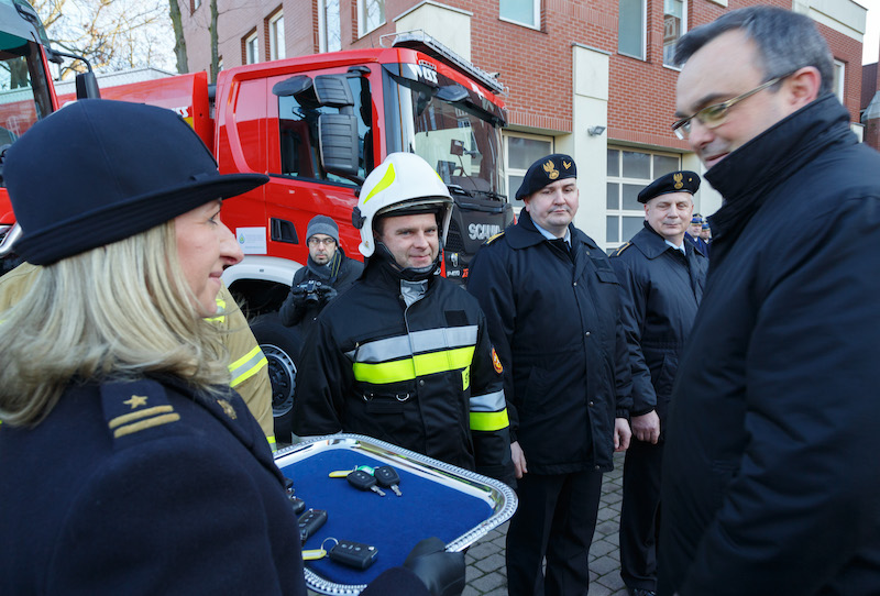 Dziewięć nowych samochodów ratowniczo-gaśniczych oraz operacyjnych trafi do komend Państwowej Straży Pożarnej na terenie województwa zachodniopomorskiego. Łączna wartość wozów to ponad 3 mln złotych. Ich przekazanie w obecności wojewody zachodniopomorskiego Tomasza Hinca odbyło się w piątek (17 stycznia) przed Komendą Wojewódzką Państwowej Straży Pożarnej w Szczecinie.