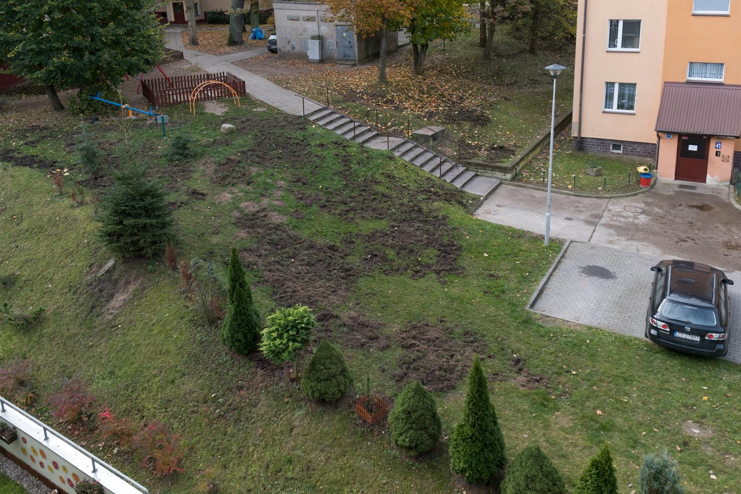 Kto rano wyjrzał przez okno, ten mógł zobaczyć, że trawnik na podwórku został przeorany właśnie przez dziki, a skala zniszczenia jest całkiem spora.