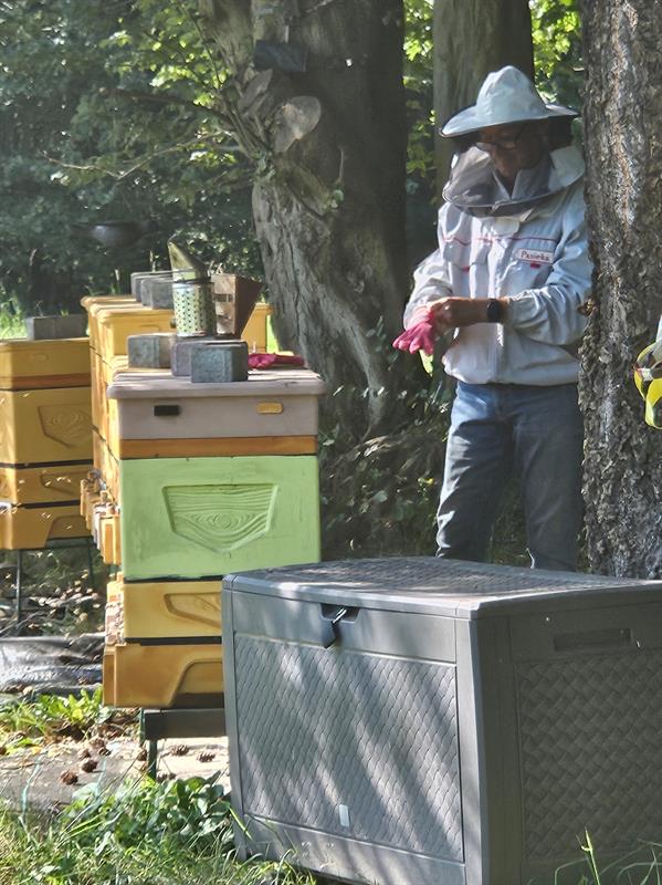 Pan Andrzej Jarecki razem z żoną Bożeną szukali pomysłu na zapełnienie czasu po przejściu na emeryturę. Z małego hobby zrodziła się wielka pasja. Swoje ule mają na naszym terenie kilku lat, ale to właśnie ZPW „Świerczewo” pszczelarzom i ich podopiecznym „zapylaczom” najbardziej przypadło do gustu. Obecnie posiadają 14 uli produkcyjnych, a w każdym z nich nawet do 80 tys. pszczół. Dbają o nie, kontrolują i starają się tworzyć idealne warunki. Miód zbierają kilka razy w roku, w zależności od rodzaju i czasu kwitnienia roślin w danym okresie. W tym roku już udało się zebrać 160 litrów z 9 pszczelich rodzin.