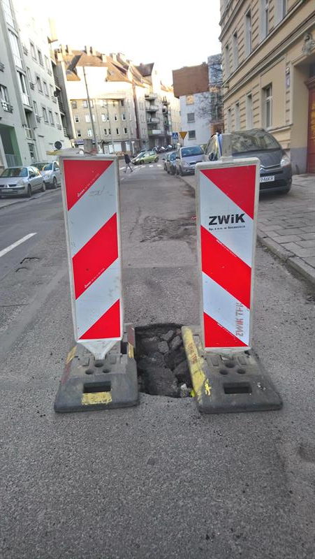 Okazało się, że groźby zapadnięcia jezdni w tym miejscu już nie ma i dlatego fachowcy ze ZWiK-u przystąpili do usunięcia awarii. Zrobili to trzeba przyznać szybko. Uff - ulżyło. Od siebie dodajmy, że nam akurat najbardziej w tej sprawie podobała się praca rzecznika prasowego tej instytucji, który rzeczowo i szybko o całej sprawie nas informował. Gdyby tak wszyscy rzecznicy...