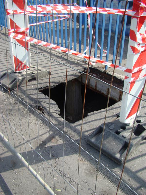 Co najmniej od poniedziałku na wiadukcie pomorzańskim stoi ogrodzenie zabezpieczające pokaźną dziurę. Można przez nią zobaczyć pordzewiałą konstrukcję żelbetonową. Przebiegający nad linią kolejową wiadukt, jest częścią alei Powstańców Wielkopolskich. Przekierowanie ruchu pieszych na drugą stronę sugeruje, że to poważniejsze uszkodzenie.