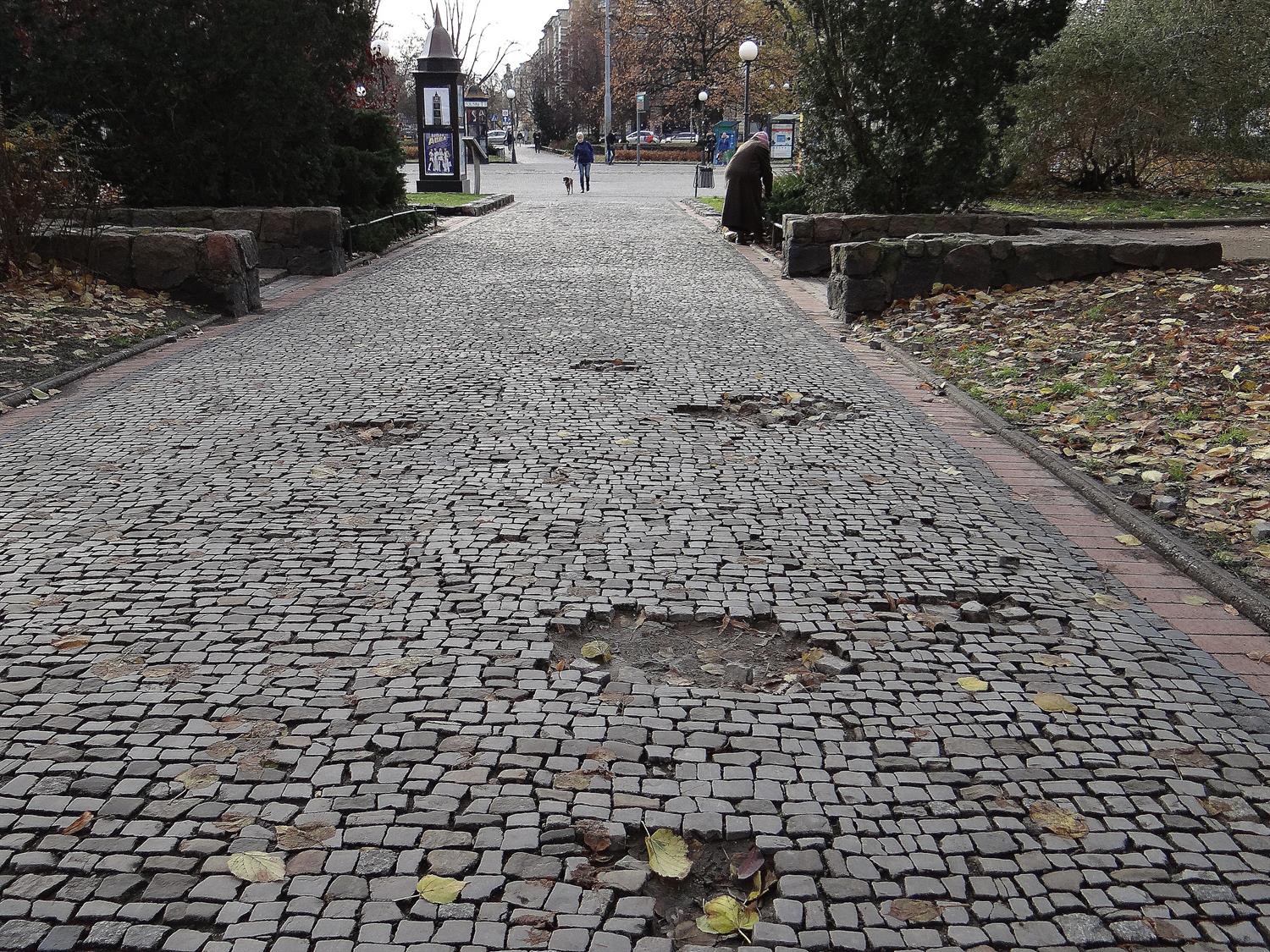 To samo dotyczy kostki na Wałach Chrobrego tylko tam większy syf