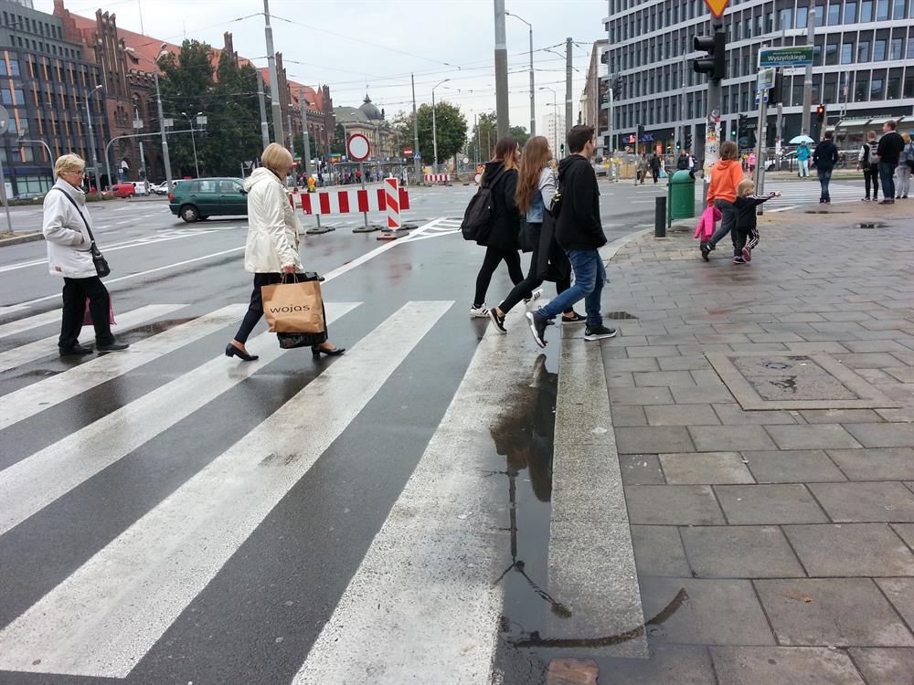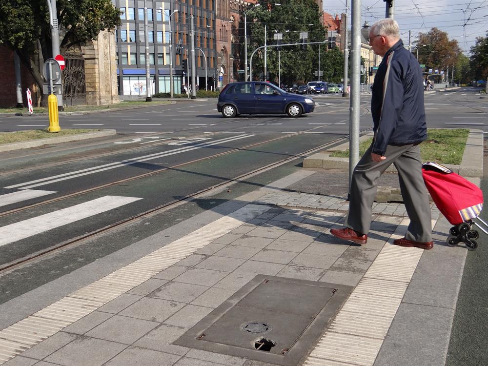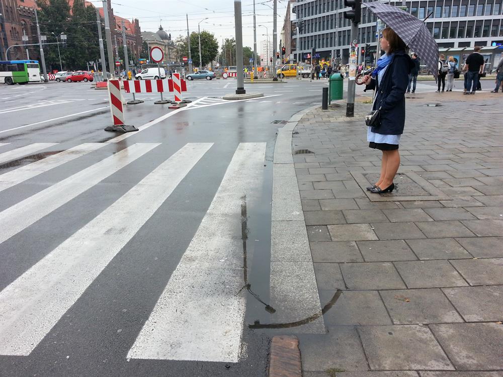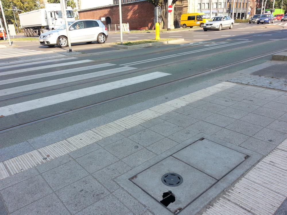 W pokrywie studzienki z instalacjami podziemnymi dziura-pułapka czyha na przechodniów na środku przejścia dla pieszych, którym można dojść do przystanków tramwajowych. Gdzie? Na Bramie Portowej w nowej nawierzchni z całkiem nową infrastrukturą. Prawdziwą udręką pieszych są także po każdym, nawet niewielkim, opadzie deszczu kałuże i bajora, w jakie zamieniają się regularnie rejony przejść dla pieszych.