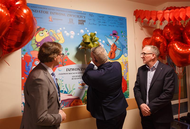 Dzwon Zwycięzcy dla małych Wojowników zawisł we wtorek 14 lutego w Klinice Pediatrii, Onkologii i Immunologii Dziecięcej szpitala klinicznego przy ul. Unii Lubelskiej w Szczecinie. Od tej pory będzie obwieszczał każde zwycięstwo nad chorobą - będzie więc symbolizował wygraną i dawał nadzieję pacjentom, ich rodzinom i personelowi. To prezent od fundacji Muszkieterowie Szpiku.