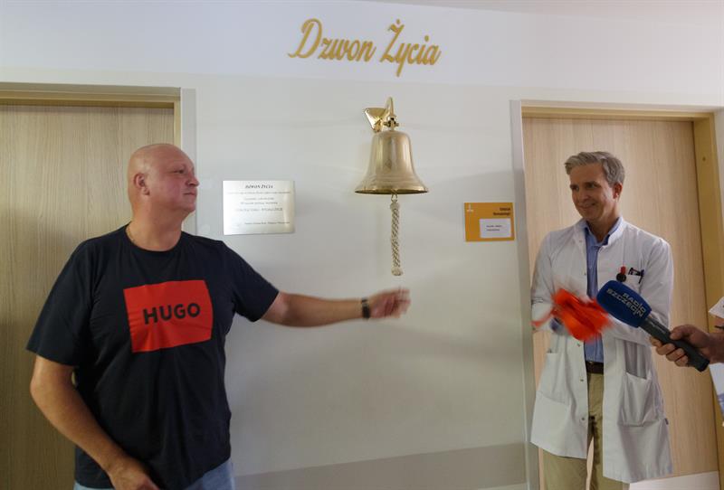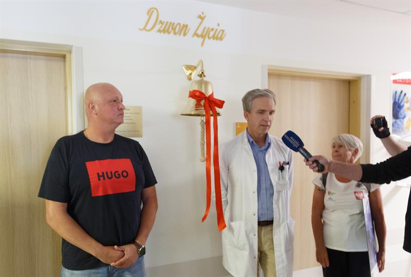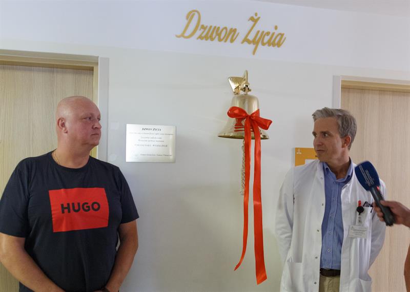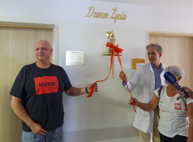 W piątek w szpitalu przy ul. Unii Lubelskiej serce dzwonu wprawił w ruch pan Piotr Górka, który leczenie zakończył dzień wcześniej. Walczył z rakiem kości.