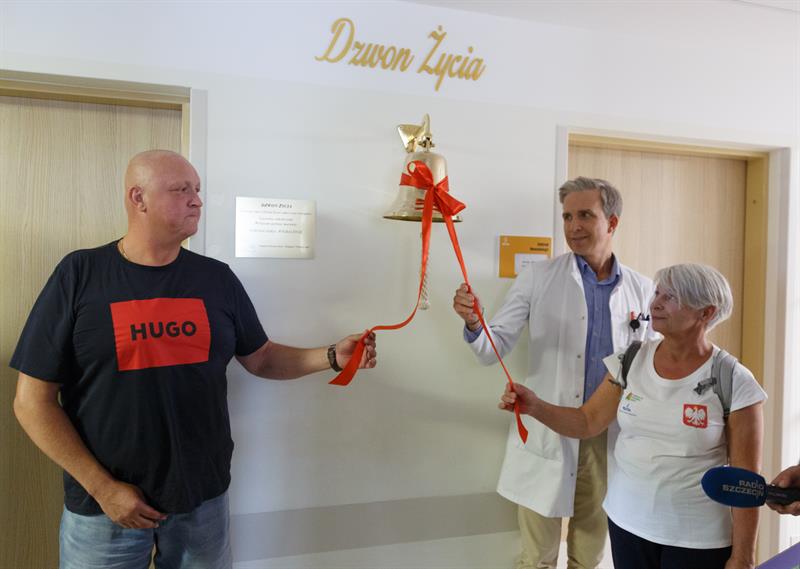 Kolejny Dzwon Życia, nazywany też Dzwonem Końca Leczenia, obwieszcza dobre wiadomości na oddziale szpitalnym, w którym pacjenci z chorobami nowotworowymi toczą walkę o zdrowie i życie. W piątek (11 sierpnia) jego dźwięk rozległ się na Oddziale Klinicznym Onkologii, Chemioterapii i Immunoterapii Nowotworów szpitala przy ul. Unii Lubelskiej w Szczecinie. Serce tego dzwonu wprawił w ruch pan Piotr z Koszalina, który właśnie zakończył leczenie. Od tej pory w ten sposób swoje zwycięstwo nad chorobą będą mogli ogłaszać kolejni pacjenci tego szpitala.