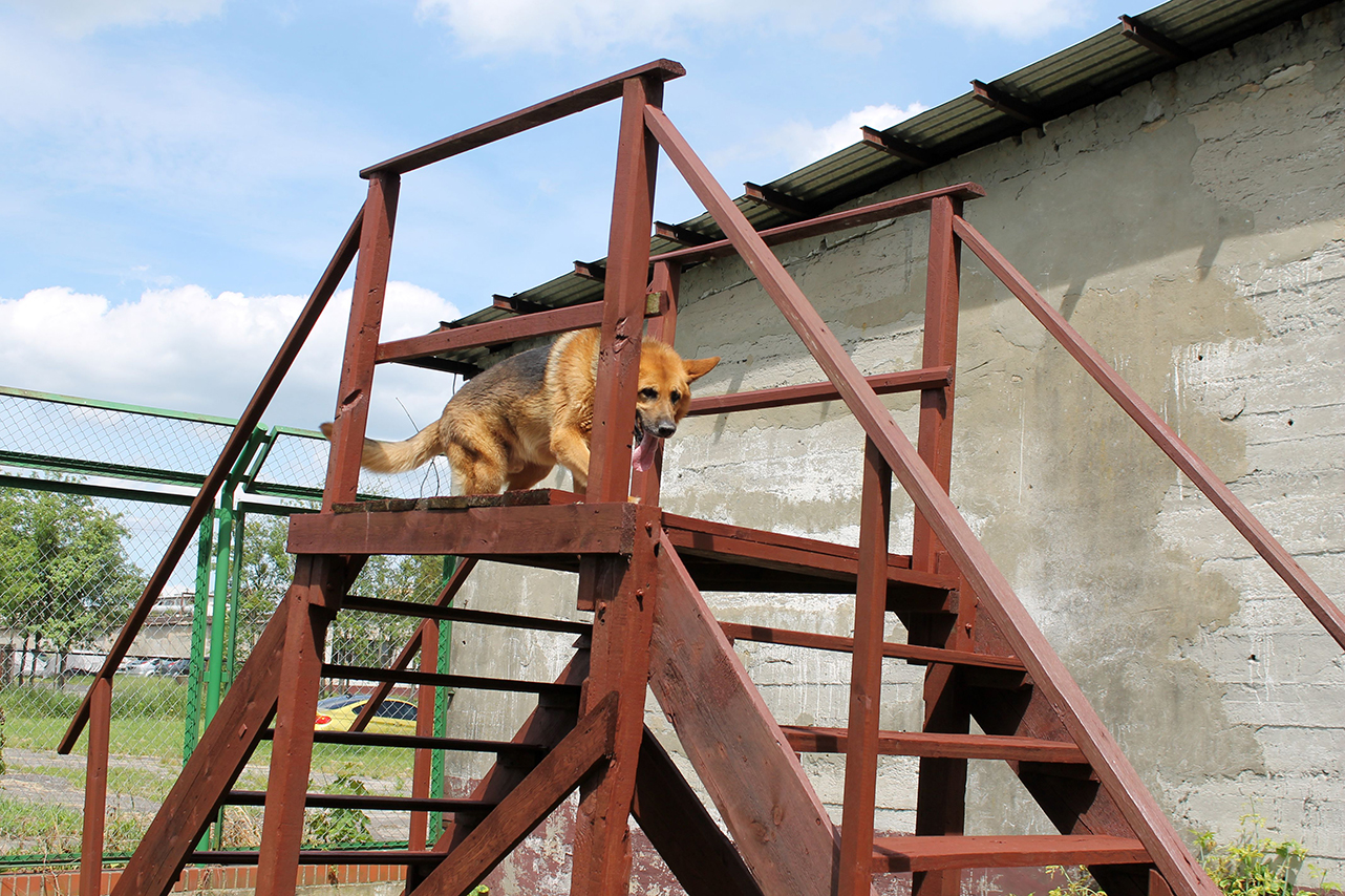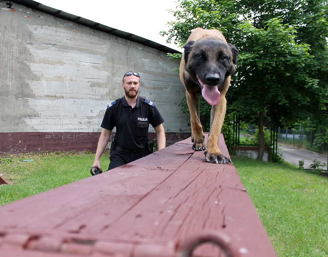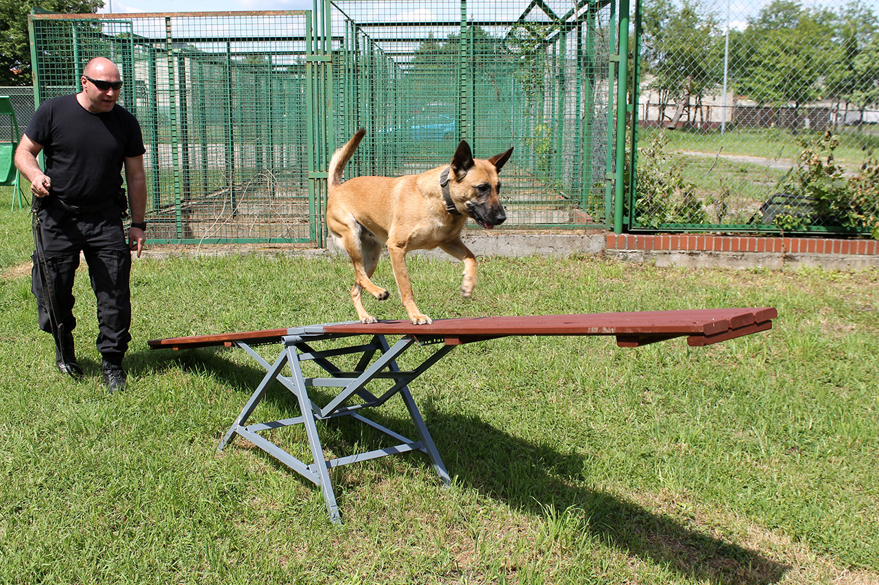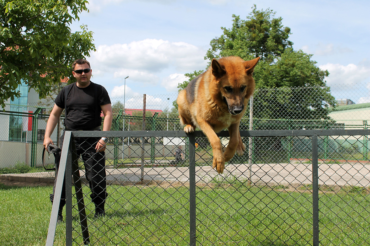 Chcąc utrzymać bardzo dobrą sprawność czworonożnych funkcjonariuszy przewodnicy psów stale prowadzą ćwiczenia z swoimi pupilami dbając o ich nienaganną kondycję.