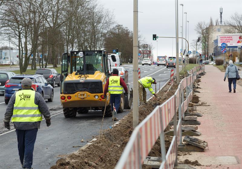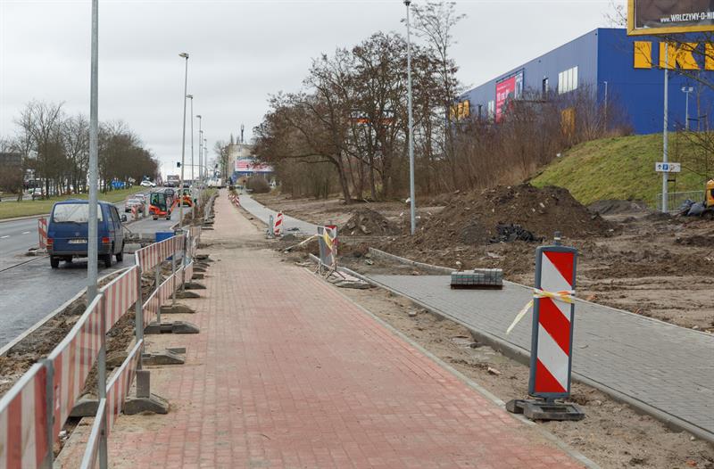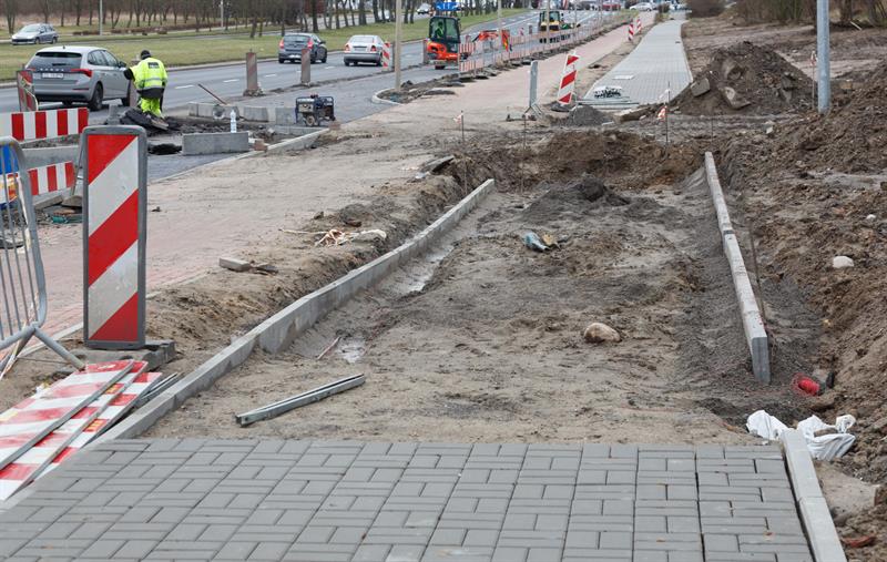 Na placu budowy niewiele się jednak działo. Ekipa pojawiała się co jakiś czas, potem szybko znikała. Obecnie niemal gotowe są już chodnik i ścieżka rowerowa, a kilka dni temu rozpoczęło się asfaltowanie nawierzchni jezdni na nowym pasie ruchu.