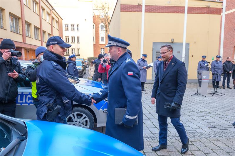 Kolejne nowe radiowozy trafiły we wtorek oficjalnie do zachodniopomorskiej policji. W uroczystym przekazaniu pojazdów uczestniczyli Wojewoda Zachodniopomorski Zbigniew Bogucki, Komendant Wojewódzki Policji w Szczecinie nadinsp. Tomasz Trawiński oraz Prezes Wojewódzkiego Funduszu Ochrony Środowiska i Gospodarki Wodnej Marek Subocz.