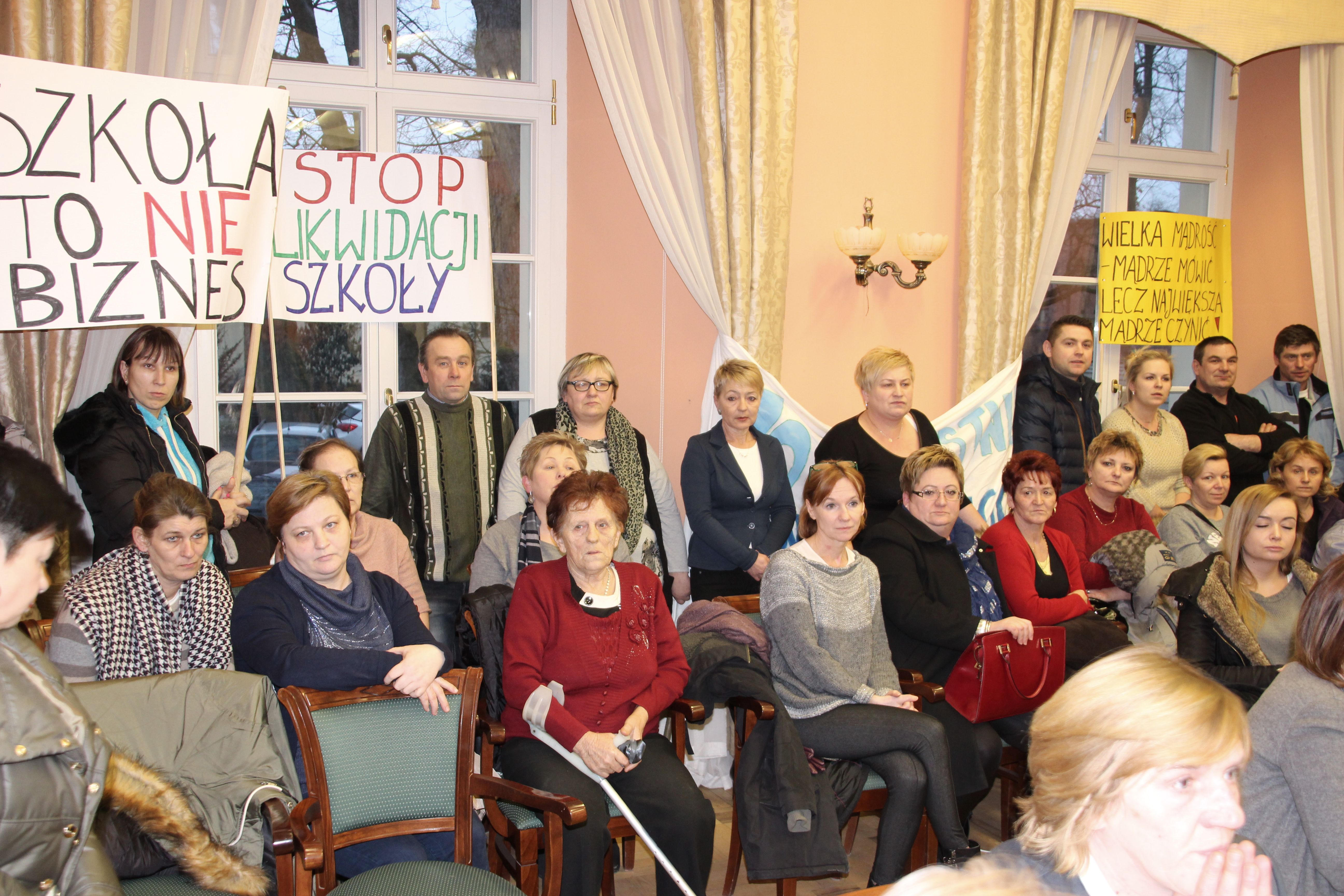 Na sali obrad nie pozwolono zabrać głosu mieszkańcom, którzy z transparentami przybyli na sesję, by bronić szkół.