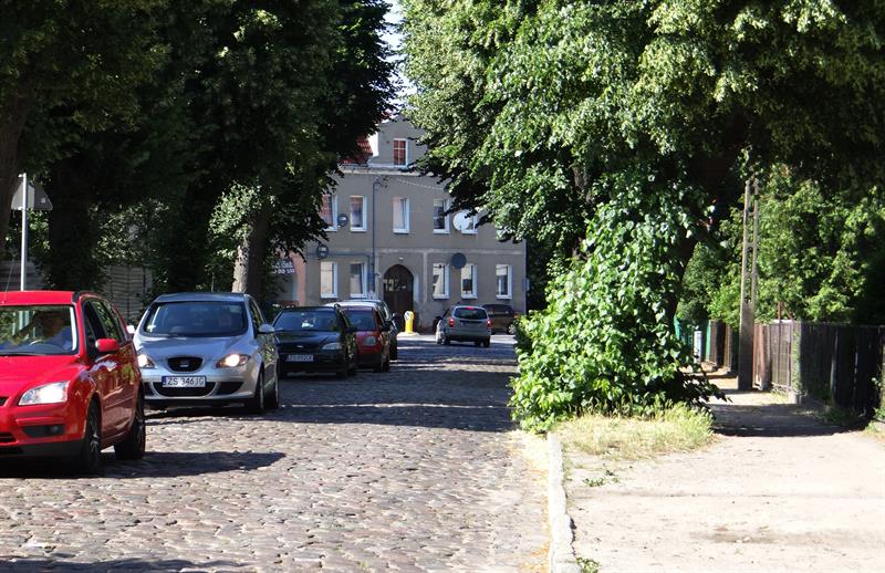 Dalej nawierzchnia brukowana z tzw. kocich łbów i pobocza po obu jej stronach wzdłuż posesji, które nie są chodnikami, a wydeptanymi w gruncie strefami służącymi od dziesięcioleci pieszym. Zakres dalszych robót obejmowałby także przebudowę uzbrojenia, urządzenie chodników, których w tym rejonie nie ma, budowę zjazdów indywidualnych i publicznych, wprowadzenie stałej organizacji ruchu.