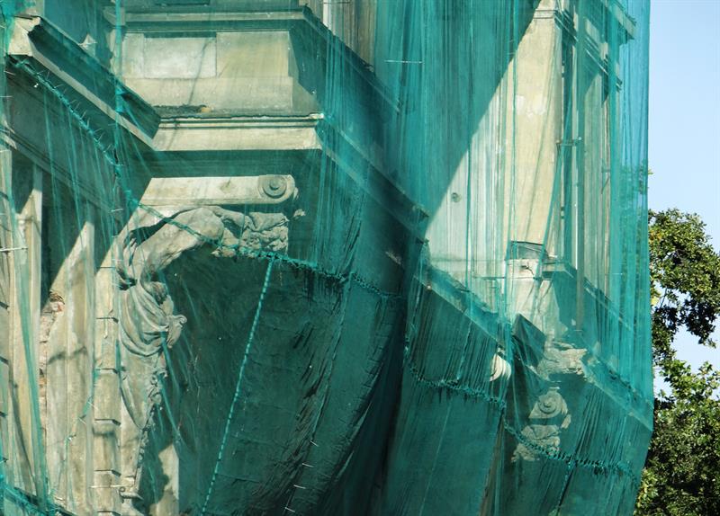 Kiedy kilka lat temu spółka Redi z siedzibą w Warszawie przejmowała nieruchomość od poprzedniego właściciela (była nią wtedy spółka Hotele Zachodniopomorskie), jej przedstawiciele roztaczali świetlane plany co do zagospodarowania i przeznaczenia budynku. Po wstrzymaniu robót jeszcze w 2016 roku i następnie po wykonaniu na przełomie listopada i grudnia 2017 r. kolejnej przewieszki siatek ochronnych maskujących frontowe elewacje i ponownym rozstawieniu wokół nieruchomości rusztowań jej właściciel w marcu br. znów zaczął ściągać siatki z murów. Wczesną wiosną rusztowania zostały kolejny raz zdemontowane, a siatki przytroczone do elewacji kamienicy. A nowością wokół wypatroszonego do gołych murów budynku dawnego hotelu jest do dziś dodatkowe wygrodzenie. Rozstawione zresztą zostało na wysokości przyległych doń chodników i od strony pl. Zwycięstwa, i ul. Potulickiej, i na części jezdni przez ZDiTM na polecenie urzędników magistratu w obawie o bezpieczeństwo przechodniów i kierowców.