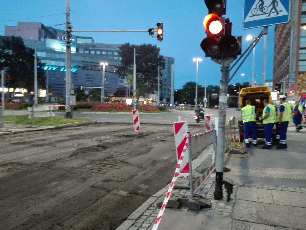 Eurovia za naprawę jezdni w al. Wyzwolenia w Szczecinie zabrała się w poniedziałek wieczorem (17 lipca). Roboty prowadzone też były na ul. Piłsudskiego, gdzie zdarto dziurawą i zniszczoną zebrę. Przechodniom zrobiono przejście przez przystanek tramwajowy.