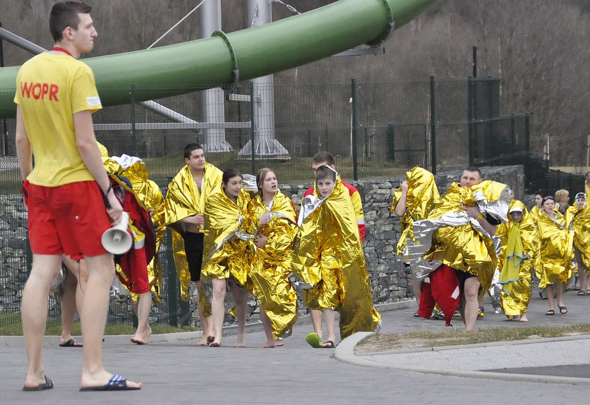 Na zdjęciu: Ewakuacja kąpiących z Parku Wodnego Koszalin.