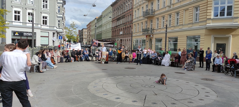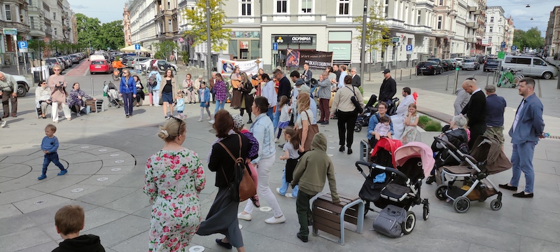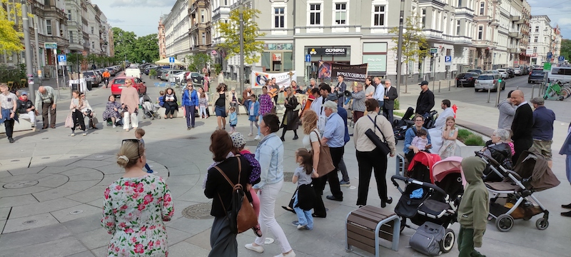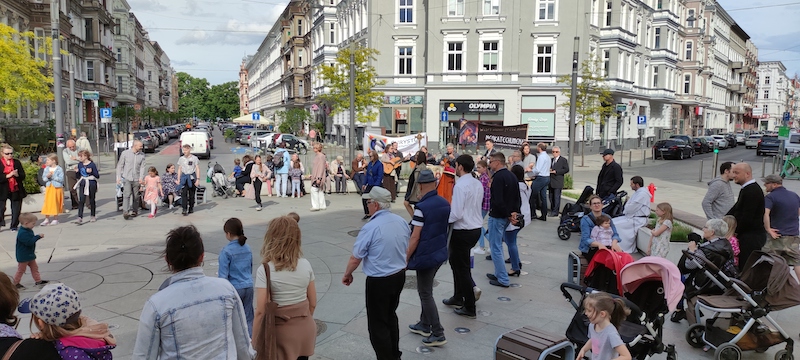 W kolejne niedziele przedstawiciele wspólnot neokatechumenalnych ewangelizują: śpiewem, tańcem, świadectwami działania Boga w ich życiu, przepowiadaniem ewangelii o Chrystusie Zmartwychwstałym. W minioną niedzielę (5 maja) na placu Zamenhofa w Szczecinie spotkali się przedstawicieli Drogi Neokatechumenalnej z dwóch parafii: ojców Dominikanów w Szczecinie i Przemienienie Pańskiego z Załomia. Było radośnie. Wielu uczestników przyszło całymi rodzinami.