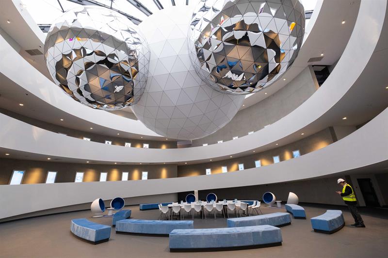 W części edukacyjnej zachwyca przede wszystkim ogromna sala ze spiralnym wejściem i zawieszonym pod sufitem ogromnym modelem cząsteczki wody. We wnętrzu urządzono salę konferencyjną na 50 osób. To przestrzeń pomyślana jako miejsce widowiskowych eksperymentów.