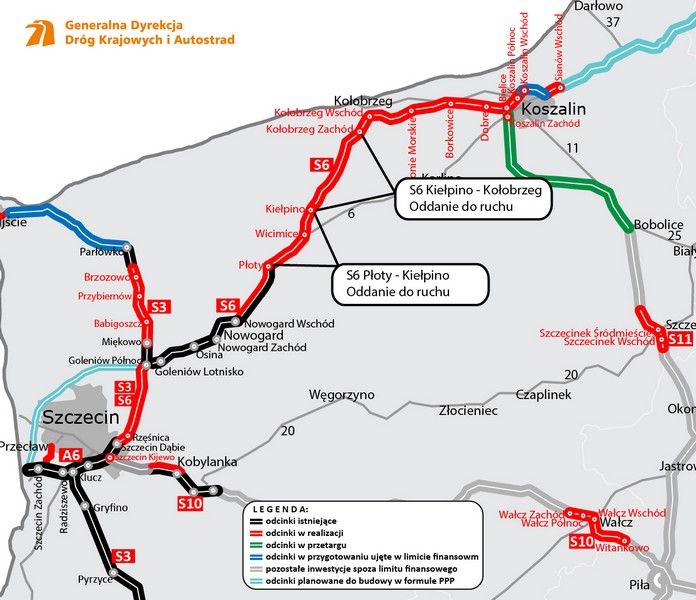 GDDKiA skierowała zawiadomienie do prokuratury dotyczące sprowadzenia bezpośredniego zagrożenia niebezpieczeństwa katastrofy w ruchu lądowym przez usunięcie barier zagradzających wjazd na drogę S6 na węźle Kołobrzeg Zachód.