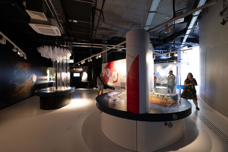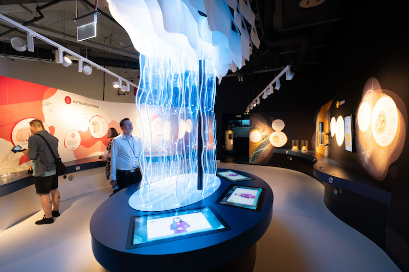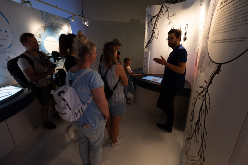 W odrębnym budynku - połączonym holem z „wodnym światem" - znajduje się czteropiętrowe Edukatorium FW. Najlepiej wjechać windą na jego szczyt, aby potem opadającym korytarzem - niczym w nowojorskim Muzeum Guggenheima - schodzić z piętra na piętro, doświadczając coraz to nowej wiedzy o kosmosie, klimacie, życiu oceanu, człowieku, cywilizacji wody oraz hydroinżynierii. Wszystko to w przystępnej, atrakcyjnej i doświadczalnej formie. Dość powiedzieć, że już teraz w Szczecinie - na długo przed planowaną wyprawą Elona Muska - można się wybrać w podróż na Marsa: doświadczyć 3-minutowego sterowania załogowym statkiem kosmicznym po trasie czerwnonej planety, wraz z lądowaniem. Albo też wybrać się w dwuosobowy lot na Księżyc. Można też - zaledwie piętro niżej - przyjrzeć się oceanicznemu życiu od podszewki, sprawdzając m.in., czy w jakich kolorach i jakich na świat świat spogląda rekin.