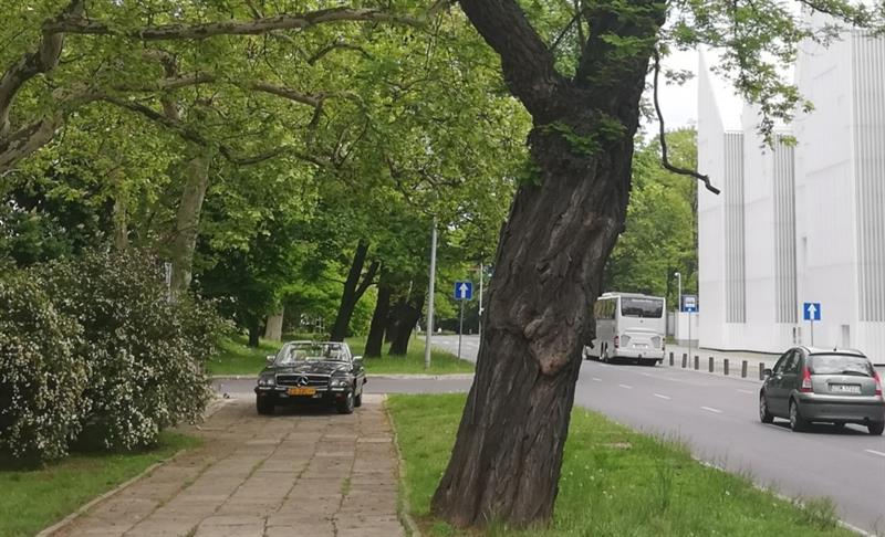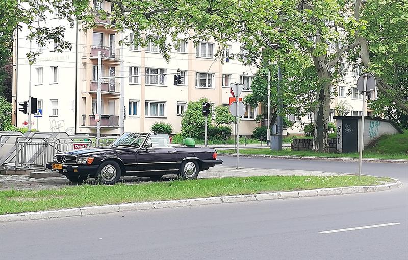 Auto piękne, ale… Czy to powód, żeby je eksponować aż tak: stawiając na środku chodnika? Swoją drogą, to jego właścicielowi trudno odmówić wyczucia szczecińskich realiów: żeby aż tak łamać przepisy o ruchu drogowym, parkując niespełna 30 metrów od siedziby Komendy Wojewódzkiej Policji i na skwerze im. Lecha Kaczyńskiego. Fantazja czy świadomość, że najciemniej pod latarnią?