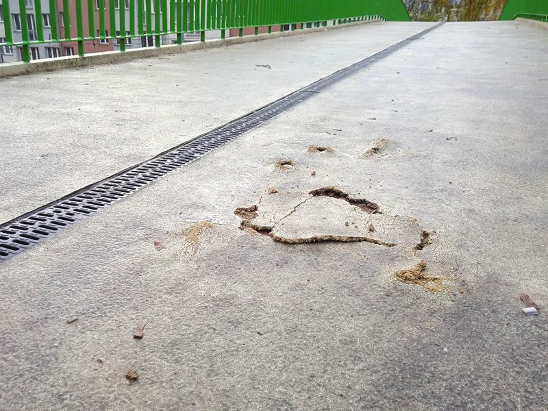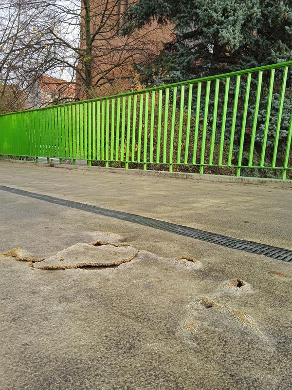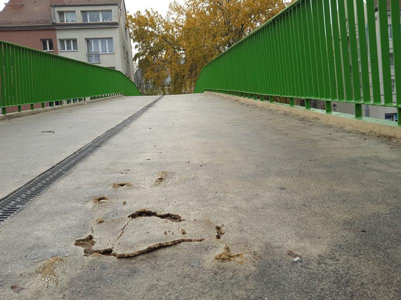 - Dla dobra pieszych konieczne jest niezwłoczne zabezpieczenie uszkodzonych miejsc żywicznej nakładki - zwraca uwagę radny Jacek Gibas.