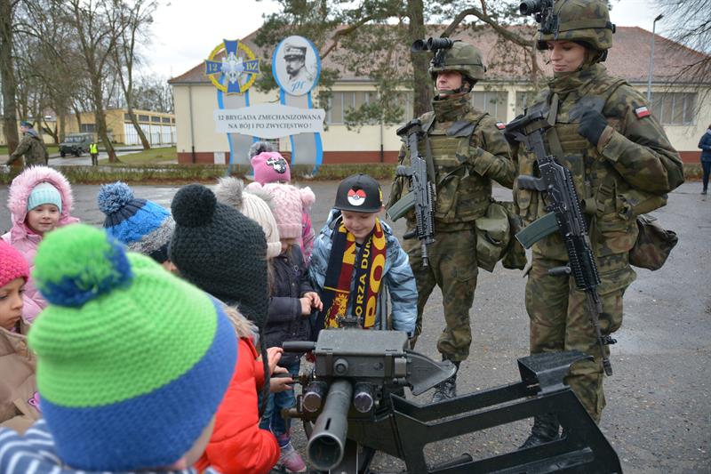 Bramy koszar po raz kolejny otworzyła we wtorek 12 Brygada Zmechanizowana. Mimo kapryśnej momentami pogody, mieszkańcom miasta i regionu w ramach "Ferii z wojskiem" udało się odwiedzić jedną z najnowocześniejszych jednostek wojskowych w Polsce, mieszczącą się przy alei Wojska Polskiego 250 w Szczecinie. "Błękitna Brygada" zaprezentowała swoje uzbrojenie i sprzęt wojskowy. Również najmłodsi mogli zobaczyć, dotknąć i przymierzyć to, czym dysponują żołnierze. Ponadto mieszkańcy mogli zwiedzić Salę Tradycji "Błękitnej" Brygady, w której zgromadzone są różnorodne, często unikatowe przedmioty.
