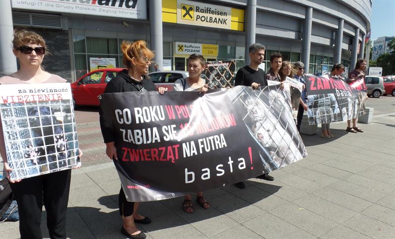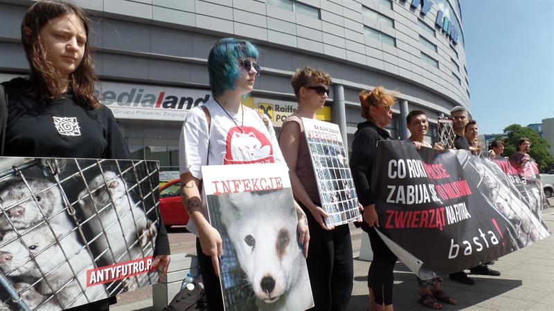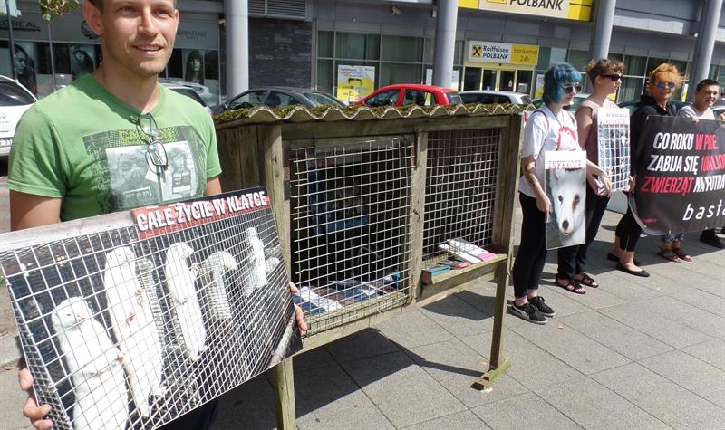 - Wyobraź sobie: norki, lisy, jenoty, króliki, szynszyle. Pomyśl: od urodzenia aż do śmierci uwięzione w ciasnej klatce, pozbawione matki, rodzeństwa, odizolowane od natury, apatyczne, chore. Nie budzi wątpliwości, iż takie warunki nie spełniają elementarnych potrzeb zwierząt. Życia bez cierpienia, do którego wszyscy mamy prawo. Wybawieniem od bólu mogłaby być śmierć. Ale i ona jest nie mniej okrutna. Popatrz: potem obdarte ze skóry martwe ciało ląduje na stosie liczącym tysiące ofiar, a futra - na wieszakach luksusowych sklepów. Naprawdę chcesz tego? - przekonywali przechodniów aktywiści z BASTA!