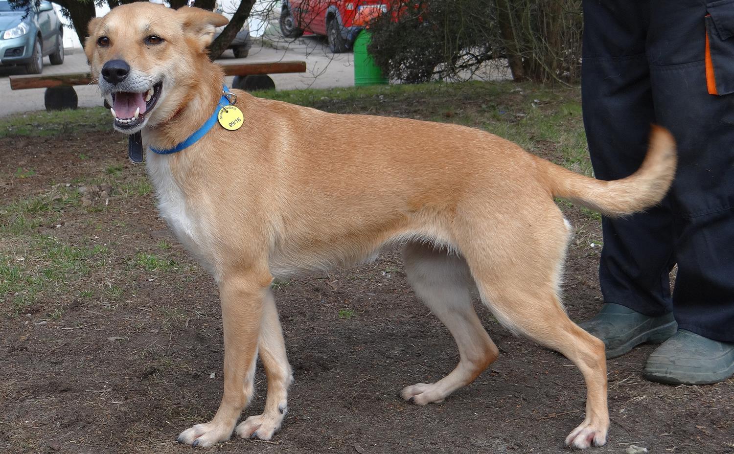 Długie nogi, sprężysty krok, kondycja jak u biegacza długodystansowego. Rudy pysk w uśmiechu. Na szyi różowa obroża z błyszczącymi cyrkoniami. Gdyby nie przywieszony do niej numer, nie sposób byłoby poznać, że to psina ze szczecińskiego bidula.