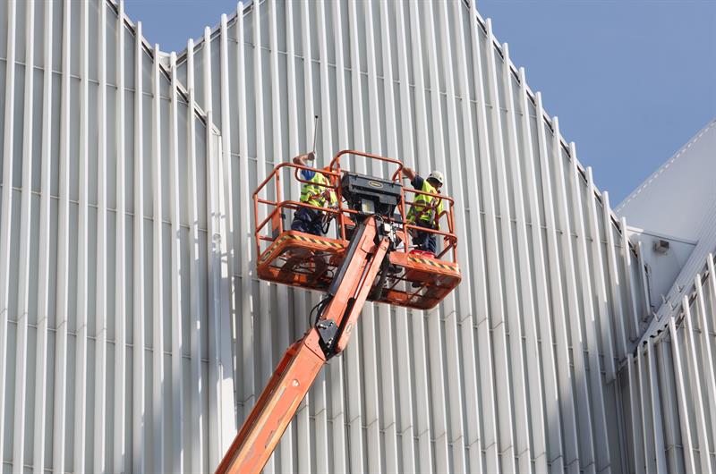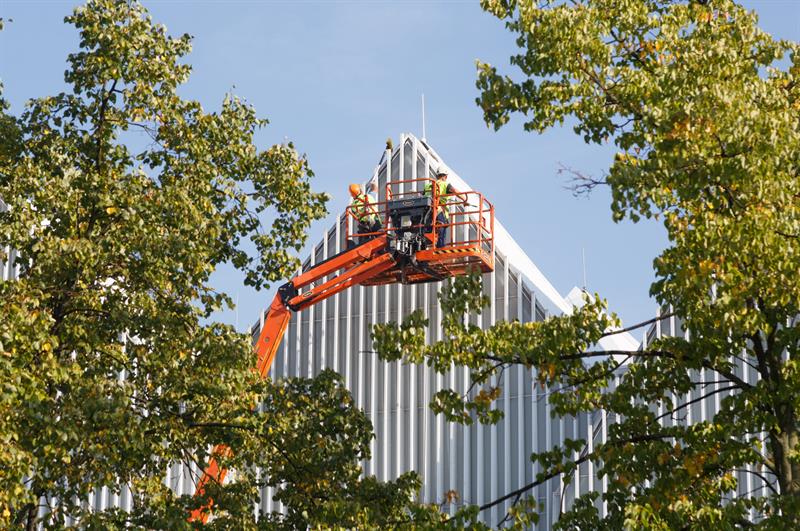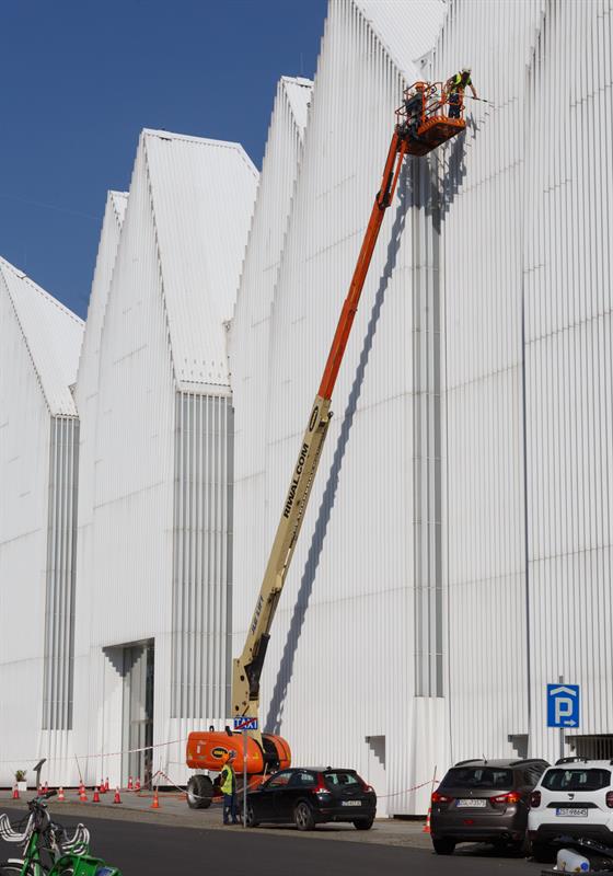 - Takie całościowe mycie filharmonii odbywa się raz do roku i do tego zatrudniamy oczywiście firmę, która ma wszystkie pozwolenia do pracy na wysokościach - mówi Katarzyna Plater-Zyberk, rzeczniczka Filharmonii im. Mieczysław Karłowicza w Szczecinie. - A w ciągu całego roku robimy to własnymi siłami do takiej wysokości, do jakiej jesteśmy w stanie tę elewację umyć.