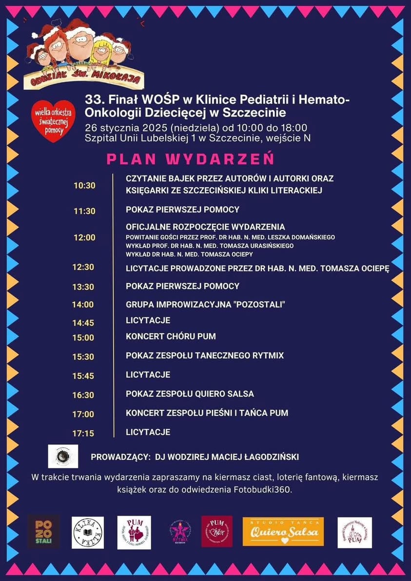 Jak co roku finałowi WOŚP w Szczecinie towarzyszyć będzie wiele ciekawych wydarzeń – koncerty, występy, pokazy, licytacje. Atrakcje szykują m.in. Dom Kultury Słowianin, Nowa Dekadencja, Centrum Handlowe Galaxy i Stara Rzeźnia.