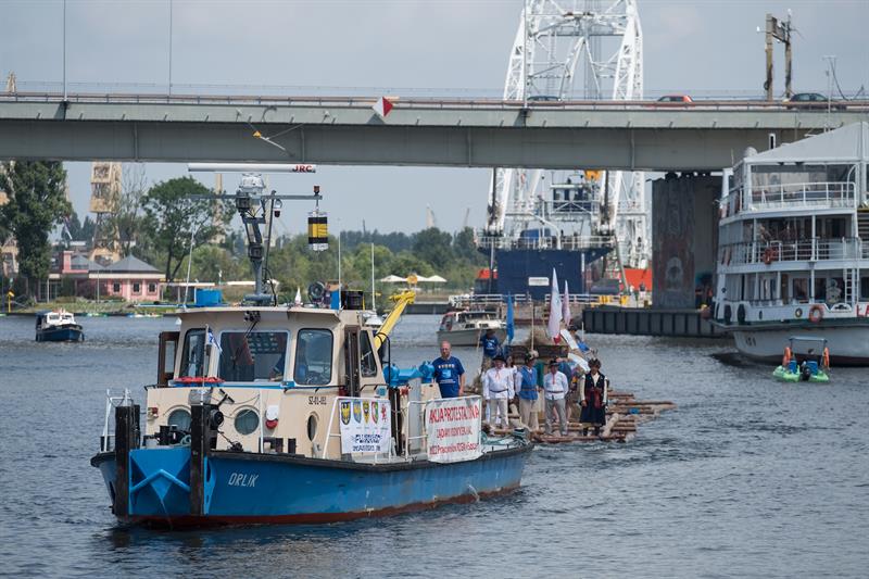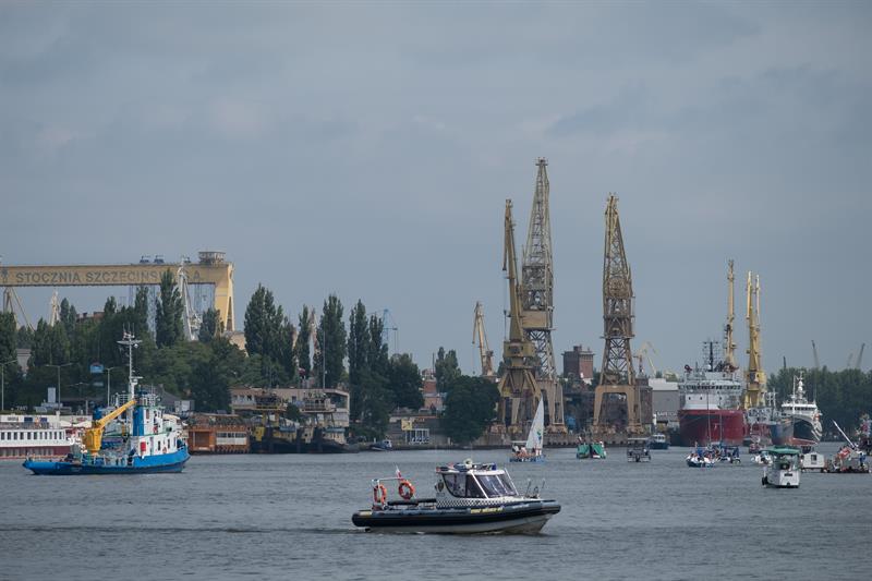 Całą flotyllę, z tratwą flisacką na czele, powitano w południe z pokładu „Nawigatora XXI”, statku Akademii Morskiej w Szczecinie. Po raz pierwszy w historii tych wypraw tratwa płynęła Wartą.