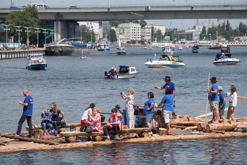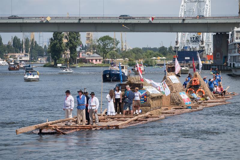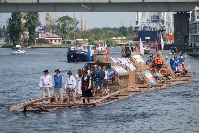 Tratwę o długości ok. 75 m oraz cały szereg innych jednostek pływających witano w sobotę (14 lipca) w Szczecinie. Parada na Odrze zwieńczyła Herbowy Flis Odrzańsko-Warciański 2018.