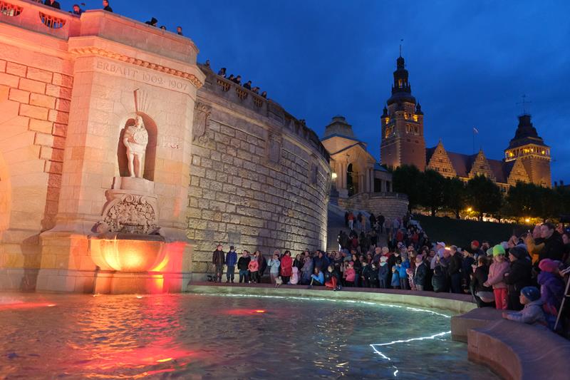 Na co dzień fontanna na Wałach Chrobrego jest podświetlona. Zaprogramowano ją tak, by strumienie wody tryskały w określonym rytmie. W poniedziałek o godzinie 21 pierwszy raz odbyła się taka prezentacja. Na Wałach zgromadziły się tłumy. Z głośników poleciał utwór pochodzący z filmu „Piraci z Karaibów”. Niestety zagłuszał go szum wody i muzykę ledwo było słychać, co trochę rozczarowało przybyłych.