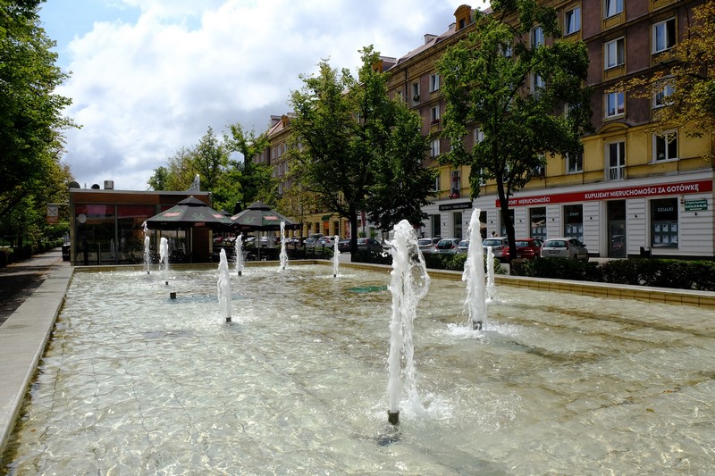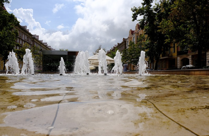 Spacerujący w niedzielne południe aleją fontann byli nieco zdziwieni tym, że wodotryski już działają, bo dna basenowych niecek nie wyglądały na dokładnie wyczyszczone.
