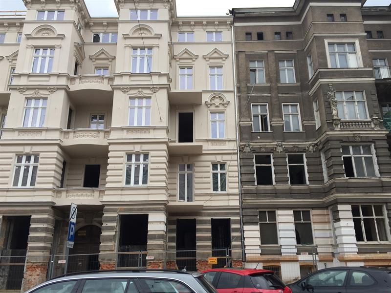 Magnus Isaksson ocenia stan zaawansowania robót na 70 proc. Wykonano większość prac w trzech kamienicach w stanie surowym. Prace - jak podkreśla - wymagały ingerencji w konstrukcję budynków, chodzi m.in. o podwyższenie stropów piwnic oraz wzmocnienia fundamentów. W częściach podziemnych urządzane są parkingi. Wykonano także elewację kamienicy nr 48. Natomiast elewacje pozostałych dwóch kamienic przygotowane są do malowania. W parterach budynków mają znajdować się powierzchnie usługowo-handlowe. W wyższych kondygnacjach zaplanowano powierzchnie biurowe i apartamenty. W budynkach pojawią się windy. Z końcem tego tygodnia lub na początku następnego ma być odsłonięta kolejna z odnowionych elewacji frontowych. ©℗