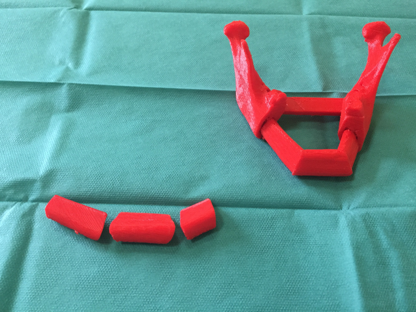 Dzięki drukarce 3D stworzono model przestrzenny żuchwy zaatakowanej guzem oraz model zrekonstruowanej już kości. Pozwoliło to lekarzom przeprowadzić wcześniej operację „na sucho” - na modelu 3D.