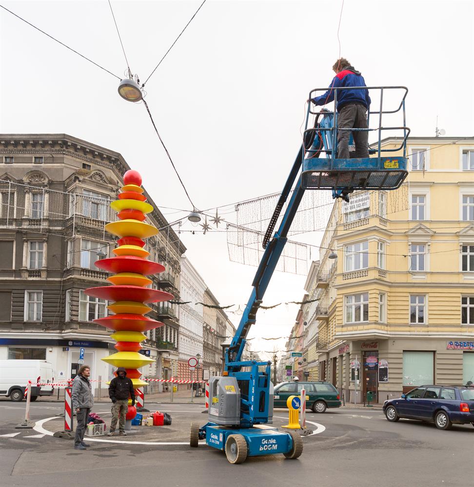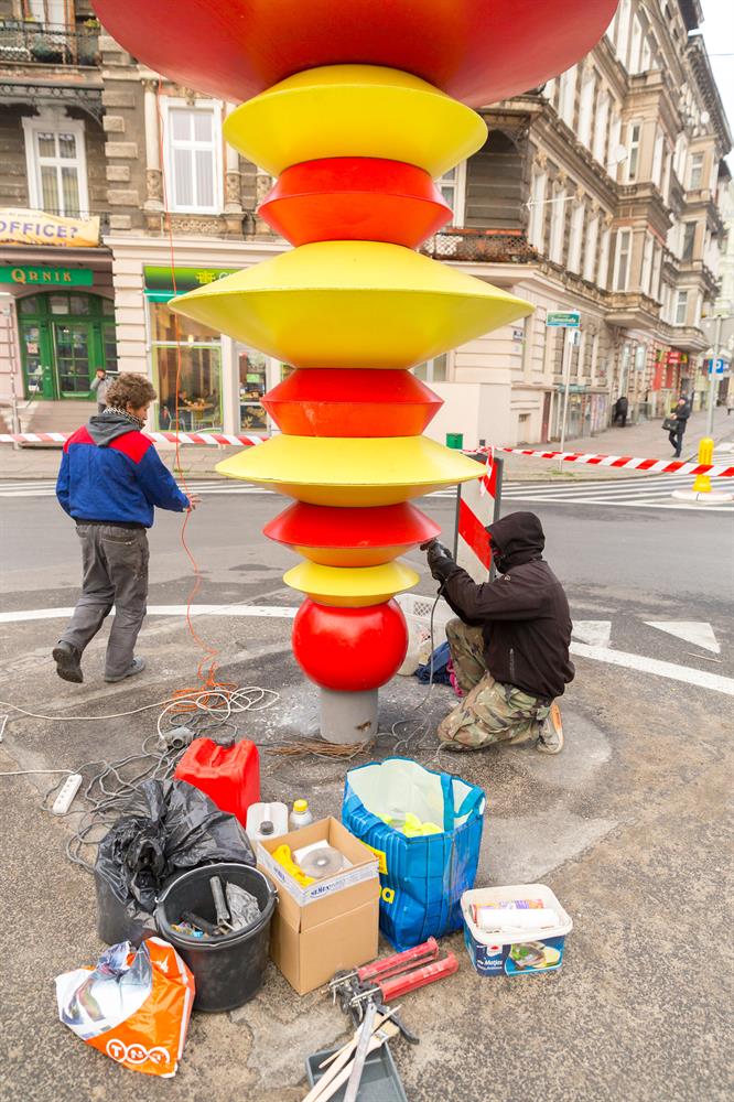 Instalacja, wartą 200 tysięcy złotych, miała być odporna na wszelkie uszkodzenia mechaniczne i drgania powierzchni, na której została ustawiona (przypomnijmy, że jest to minirondo na środku jezdni). Pęknięcia największego elementu i rysy na mniejszych „koralach" „Frygi" zostały zauważone w ubiegłym tygodniu. Jak zapewnił Rafał Roguszka, dyrektor 13 Muz, które realizują projekt cyklu rzeźb miejskich, umowa z wykonawcą obliguje go do usunięcia uszkodzeń na swój koszt.