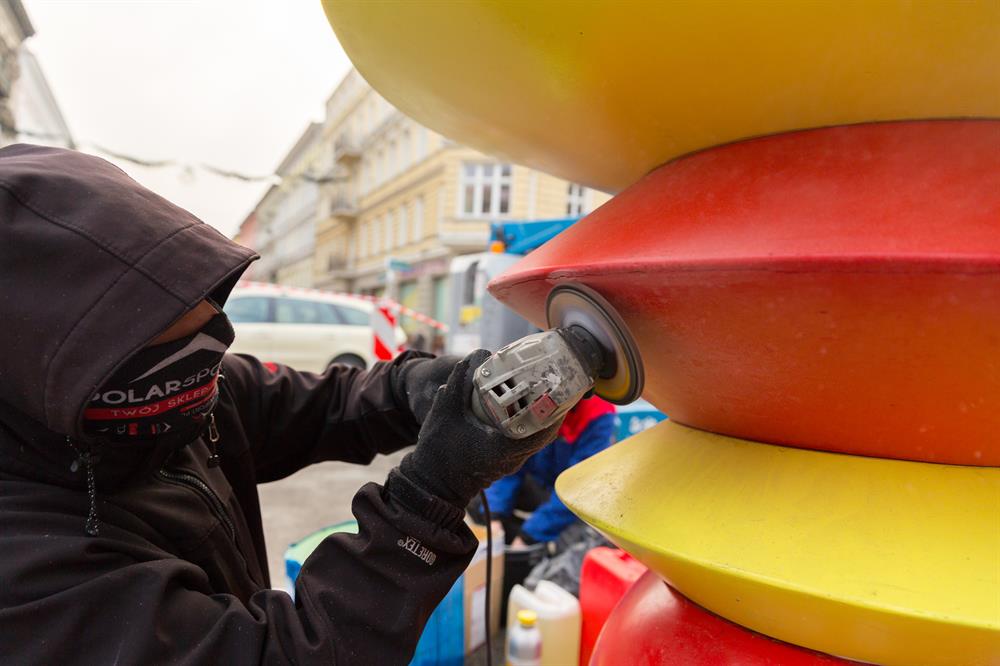 Teraz zniszczone fragmenty instalacji będą zalewane żywicą, wypełniane i malowane.
