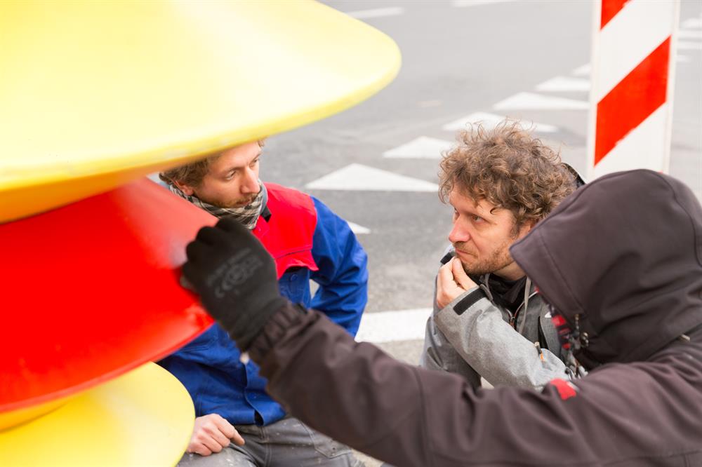 Jak informowano wcześniej, rysy i pęknięcia powstały przy montażu. Wykonawca, który każdy wrzecionowaty element, składał z dwóch części i sklejał na całej wewnętrznej powierzchni, tłumaczył, że w krawędzie kolorowych dysków, wbiły się pasy montażowe. Wyjaśniał też, że „Fryga" to konstrukcja prototypowa, więc nie wszystko dało się przewidzieć.